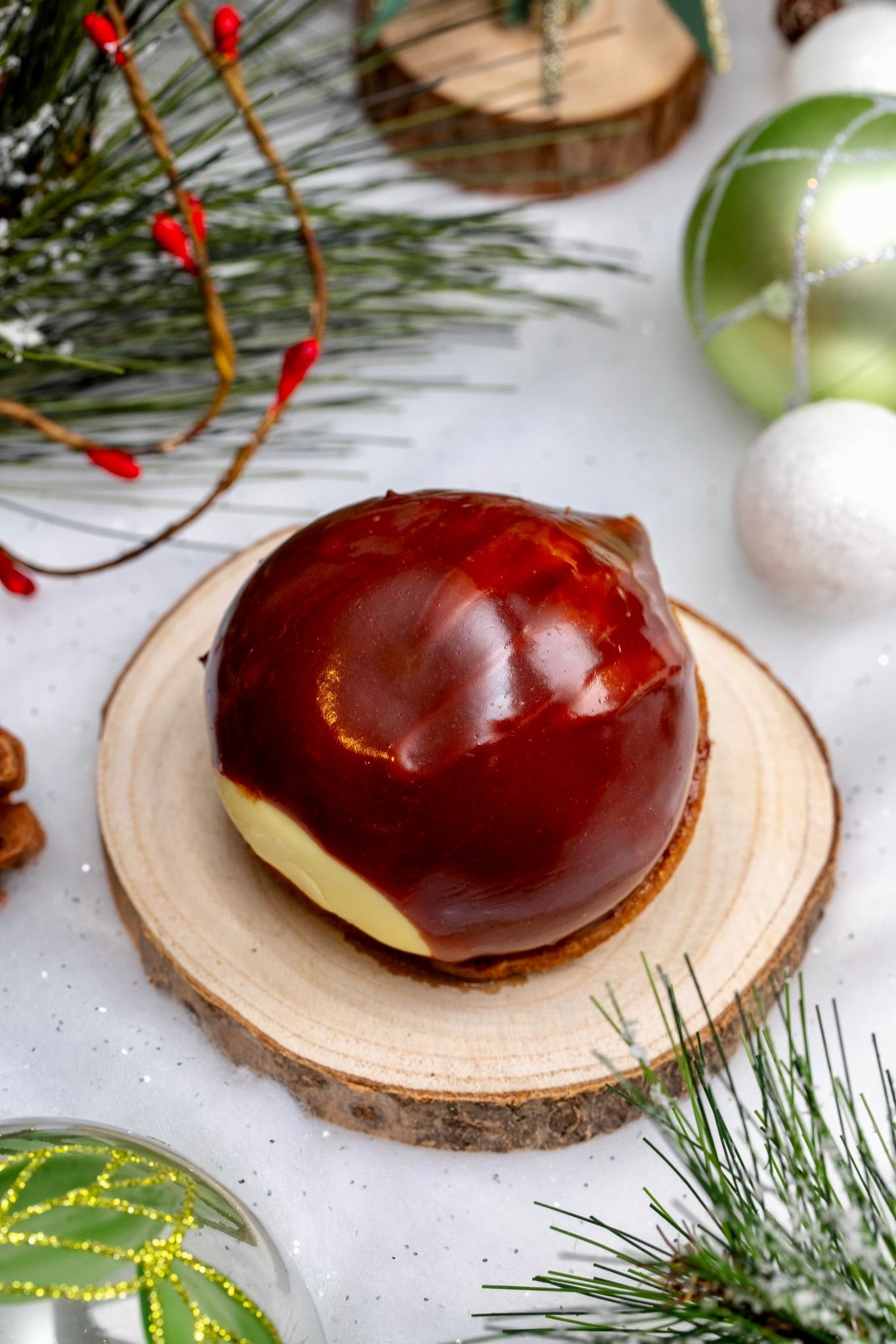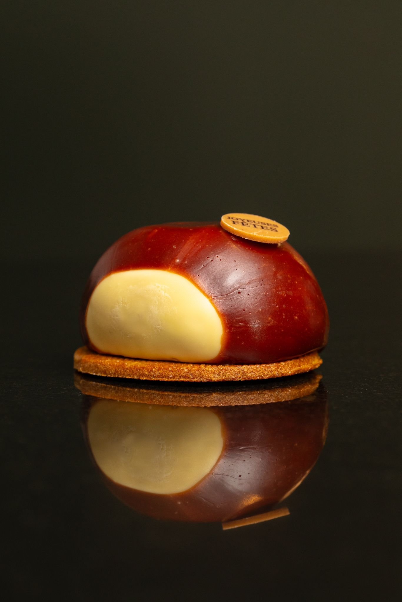 Biscuit financier au marrons crème de marrons, confit de cassis, mousse aux marrons